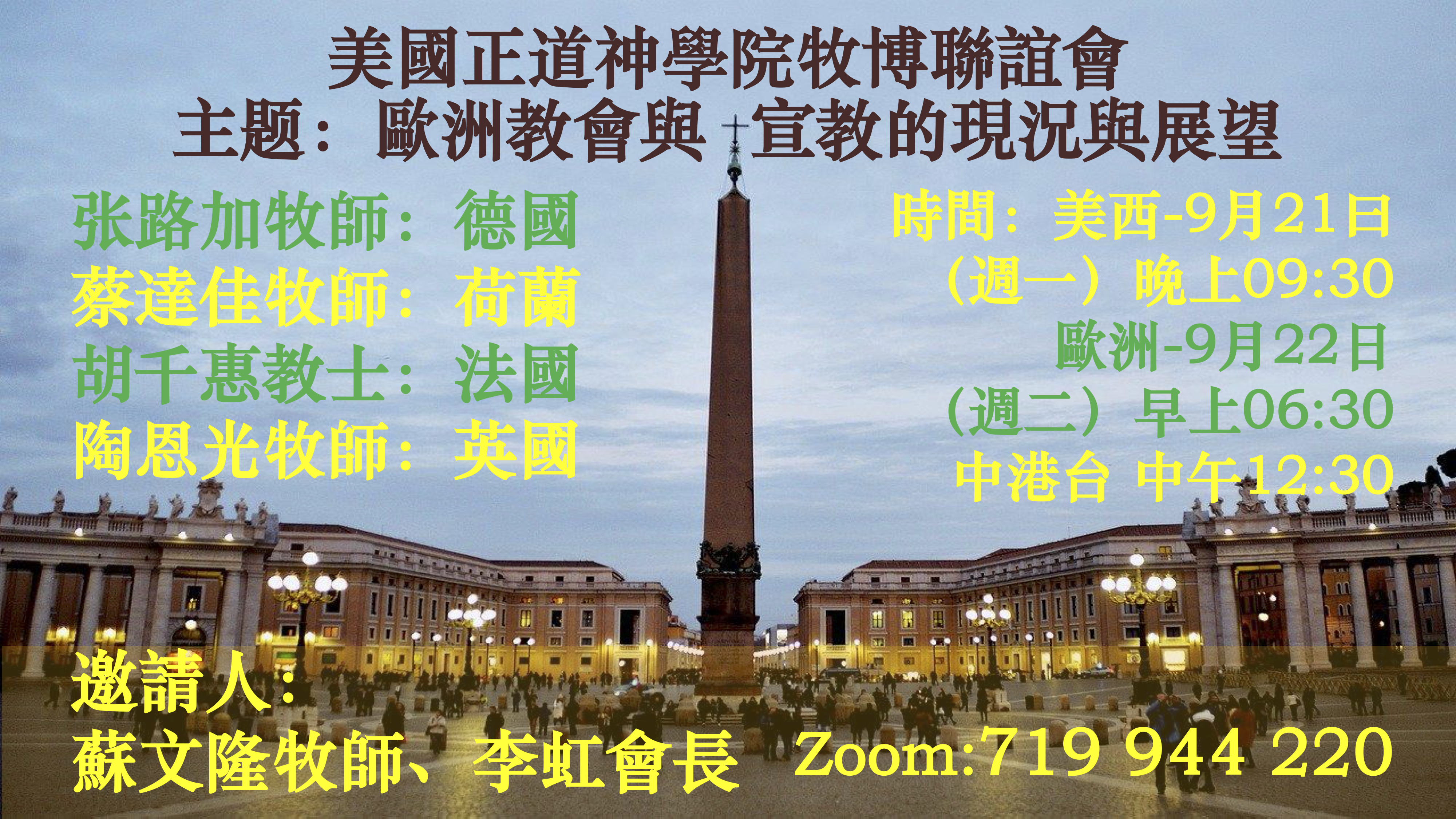 各位親愛的牧長、學長、同學們,